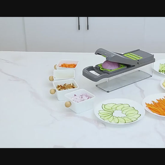 Perfect for home cooks, busy parents, and health-conscious eaters, this all-in-one slicer is a must-have for any modern kitchen. Say goodbye to cluttered drawers and hello to streamlined cooking with this powerful, space-saving gadget.