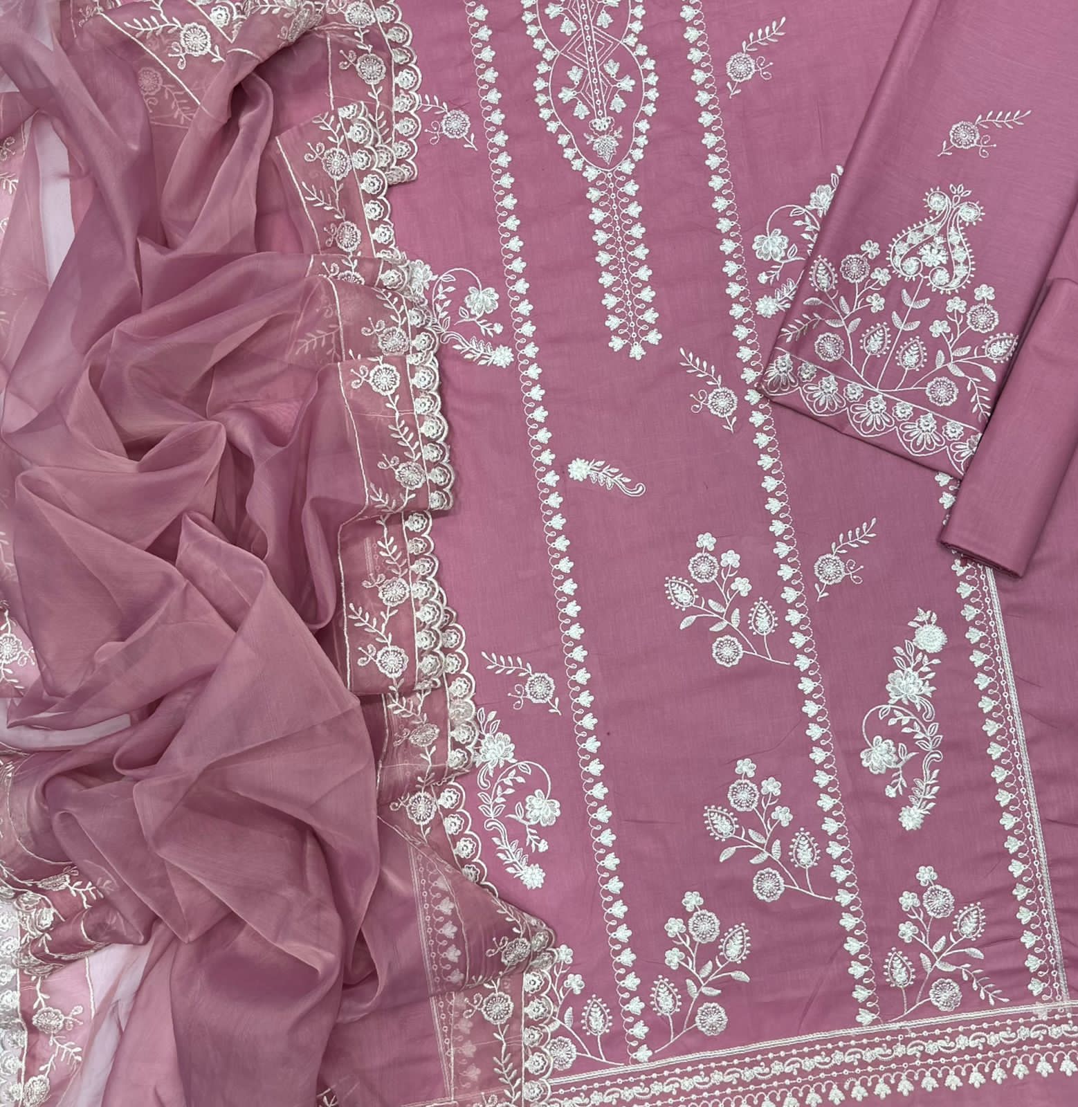 With its heavy embroidery, luxury finishing, and ready-to-wear embroidered organza dupatta, this outfit is perfect for Eid, parties, family gatherings, and formal wear.